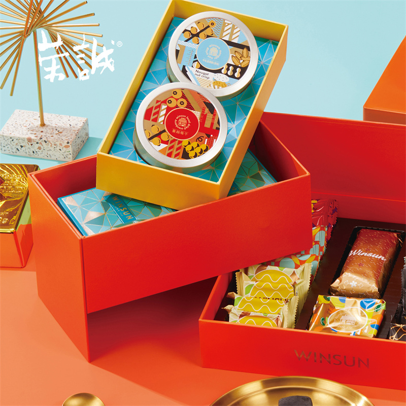 100g開心果x1,88g牛軋堅果酥(原味)x1,100g蔓越莓干x1,100g綜合果仁x1,35g特色果仁腐乳餅x2,35g絲絲濃香椰蓉餅x2,30g香妃鳳梨酥x4,30g黑金鳳梨酥x4,13.5g澳式金泊雞蛋卷(咸蛋黃)x6,8g蔓越莓曲奇x5,8g原味奶油曲奇x5,10g香焙杏仁酥x5,10g香焙蔓越莓酥x5,48g櫻花荔枝味曲奇x1,30g堅果撻x1
