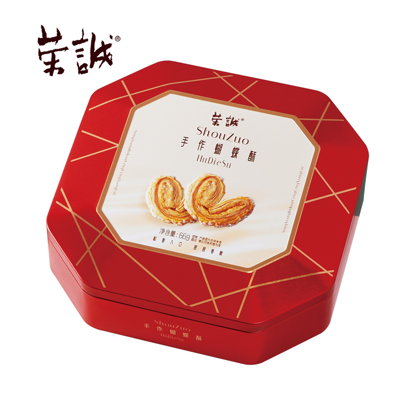 【編 碼】 CGT2409 【條形碼】 6925755536199 【尺 寸】 19.9x19.9x6.1cm 【凈含量】 66g 【規(guī) 格】 66gx12盒/箱 【內(nèi)容物】 11g原味蝴蝶酥x6