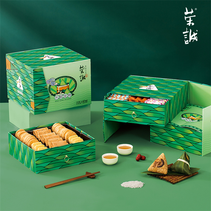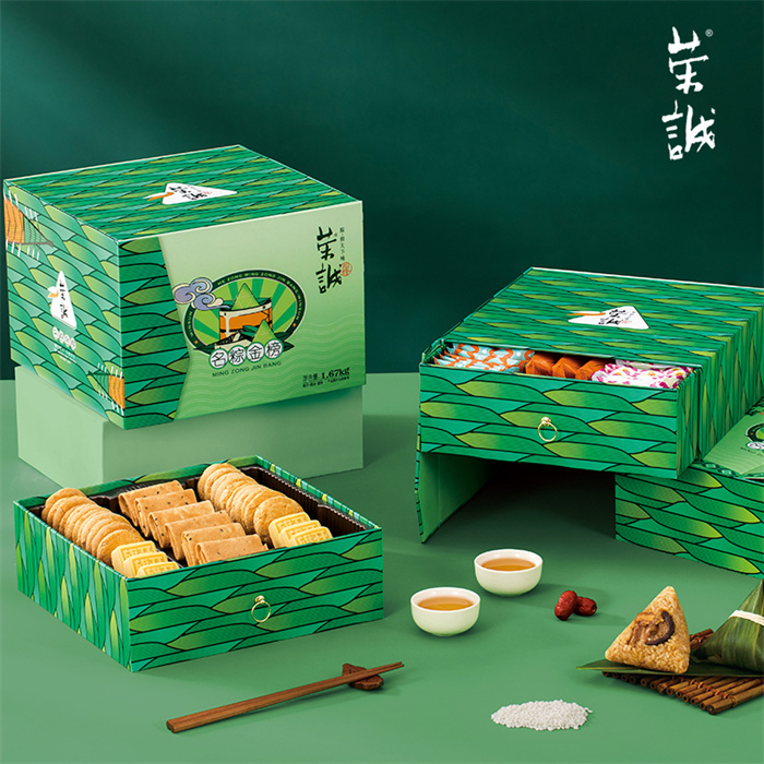【編 碼】 HZZ2408 【條形碼】 6925755536472 【尺 寸】 26.2x26.5x19cm 【凈含量】 1.67kg 【規(guī) 格】 1.67kgx4盒/箱 【內(nèi)容物】  200g蛋黃肉粽(2粒),200g潮汕雙烹粽(2粒),200g潮汕地道鹵水肉粽(2粒),200g花生蓮子粽(2粒),200g蜜棗粽(2粒),200g豆沙粽(2粒),80g澳式金泊雞蛋卷(芝麻原味)(6塊),120g香焙杏仁酥(12塊),120g香焙花生酥(12塊),150g定勝糕(綠豆原味)(6塊)