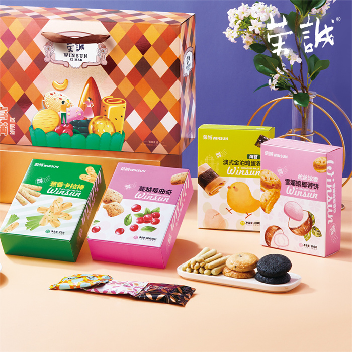 【編 碼】 CGZ2510 【條形碼】 6925755536830 【尺 寸】 37x12x23cm 【凈含量】 532g 【規(guī) 格】 532gx6盒/箱 【內(nèi)容物】  80g香焙杏仁酥x1,80g香焙黑芝麻酥x1,80g蔓越莓曲奇x1,72g蔥香卡拉棒x1,80g澳式金泊雞蛋卷(海苔)x1,140g絲絲濃香雪媚娘椰蓉餅x1