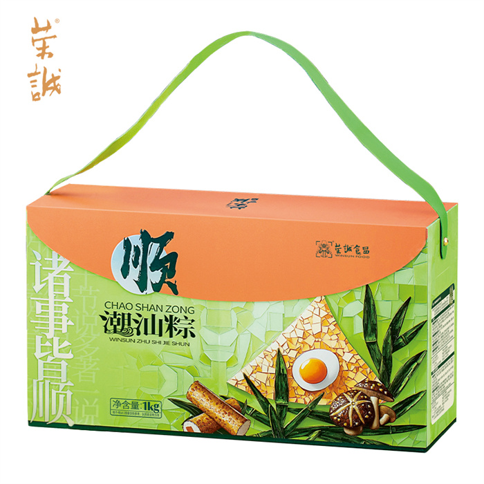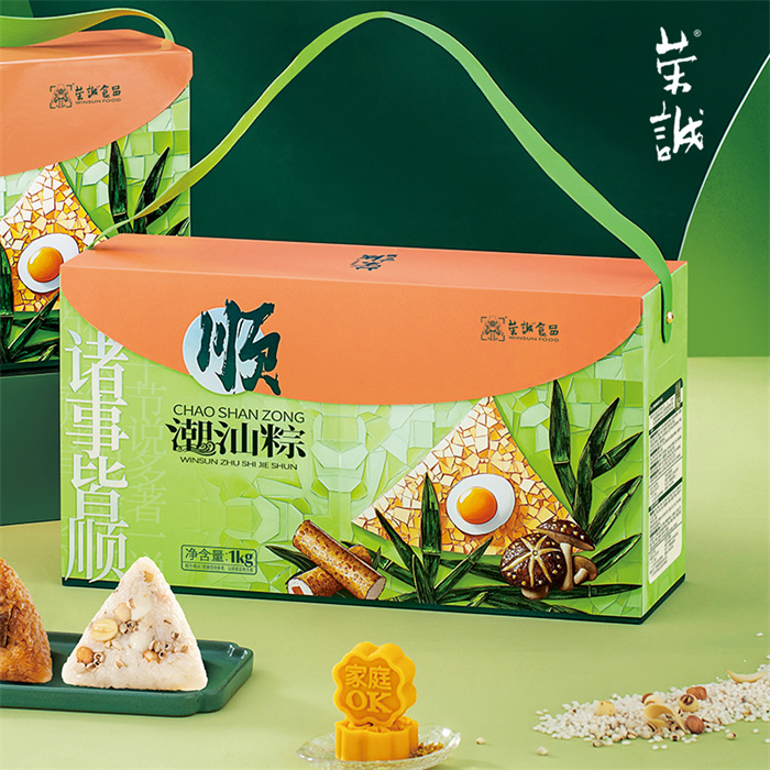 100g潮汕地道鹵水肉粽x2,100g潮汕秘制菜脯鮮鴨肉粽x2,100g潮汕蜜制桂香糯藕粽x2,100g潮汕特色甜肴五果粽x2,35g腐乳餅x4,30g滋芯綠豆糕(海鹽檸檬味)x2